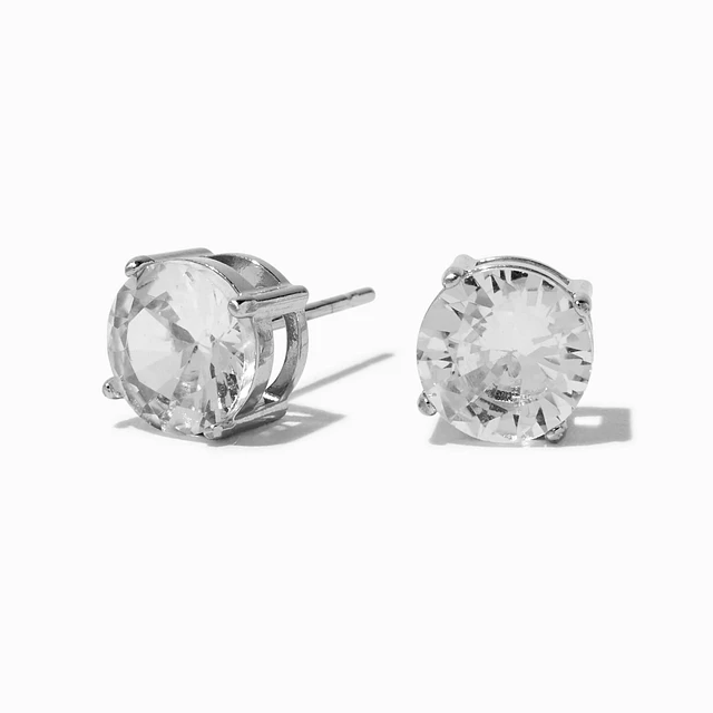 Silver-tone Stainless Steel Cubic Zirconia 8mm Basket Stud Earrings