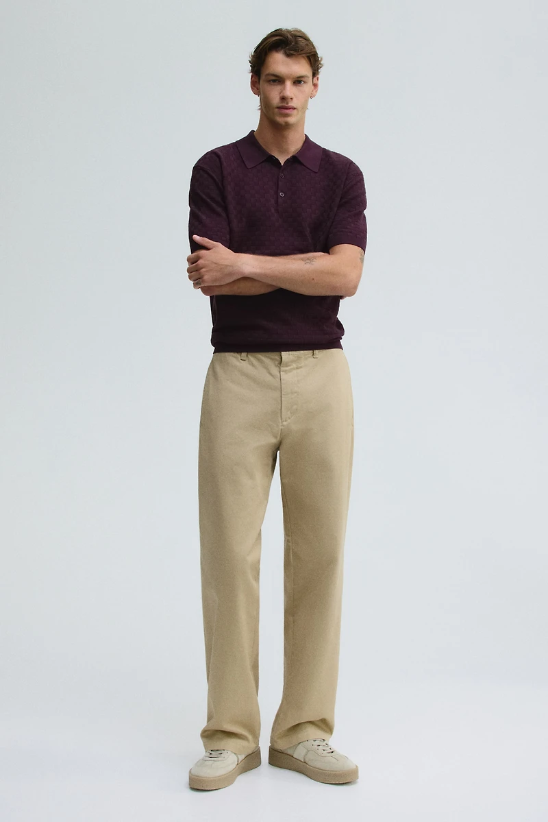 Slim-fit polo shirt in a soft, textured knit with a fitted silhouette. Collar, short button placket, and short sleeves. Narrow ribbing at cuffs and hem.
