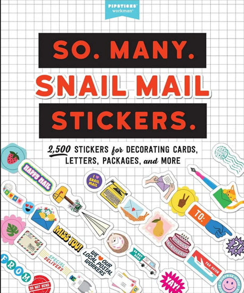 Part of Pipsticks+Workman's wildly popular So. Many. Stickers. series, So. Many. Snail Mail. Stickers. features 2,500 fun and trendy stickers that celebrate the art of snail mail!