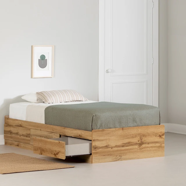 South Shore Furniture Cavalleri Lit simple avec 3 tiroirs - Chêne Nordik