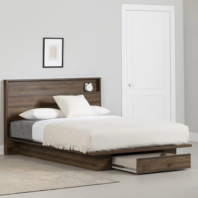 South Shore Furniture Musano Lit plateforme double/grand avec tête de lit - Noyer naturel