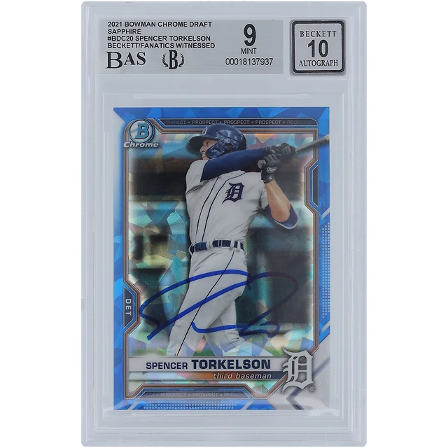 Spencer Torkelson Detroit Tigers Autographié 2021 Bowman Chrome Draft Sapphire #BDC-20 Beckett Fanatics Witnessed Authenticated 9/10 Card