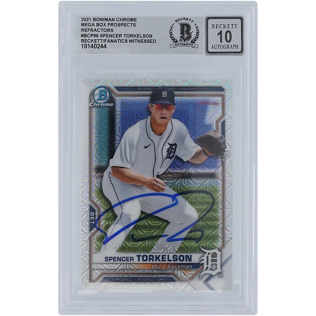 Spencer Torkelson Detroit Tigers Autographié 2021 Bowman Chrome Prospects Mega Box Refractors #BCP-96 Beckett Fanatics Witnessed Authenticated 10 Card