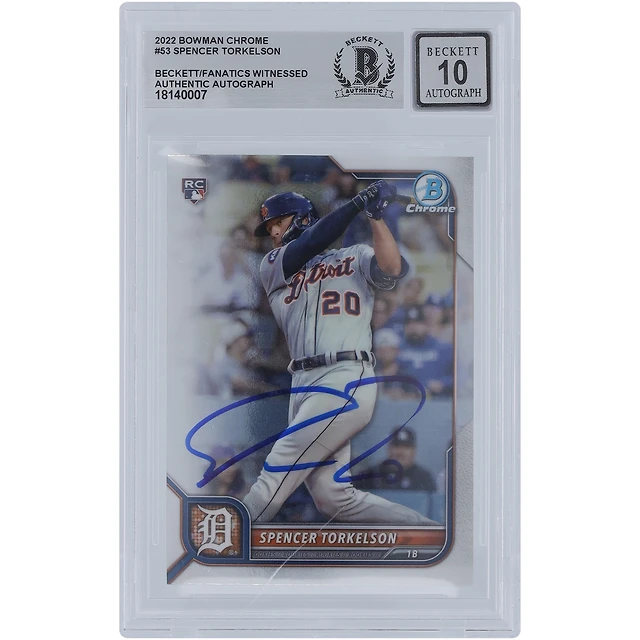 Spencer Torkelson Detroit Tigers autographié 2022 Bowman Chrome #53 Beckett Fanatics a été témoin d'une carte de recrue authentifiée 10