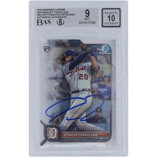 Spencer Torkelson Detroit Tigers autographié 2022 Bowman Chrome #53 Beckett Fanatics a été témoin d'une carte recrue authentifiée 9/10
