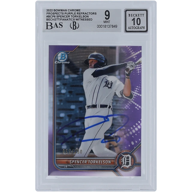 Spencer Torkelson Detroit Tigers Autographié 2022 Bowman Chrome Prospects Purple Refractors #BCP-6 #/250 Beckett Fanatics Witnessed Authenticated 9/10 Card
