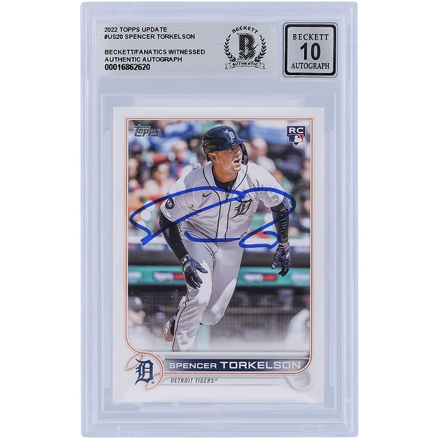Spencer Torkelson Detroit Tigers Autographié 2022 Topps Mise à jour #US20 Beckett Fanatics a été témoin d'une carte recrue authentifiée 10