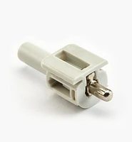 This spring-loaded support locks a shelf securely in place. It has a nickel-plated zinc alloy pin sized to fit 5mm diameter holes, with a tip rounded and polished to slide into place without scratching the wall of the cabinet. Designed to install in a shelf at least 18mm thick.