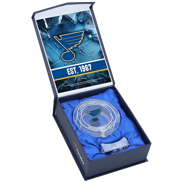 St. Louis Blues Crystal Puck - Filled with Home Ice from the 2024-25 Season