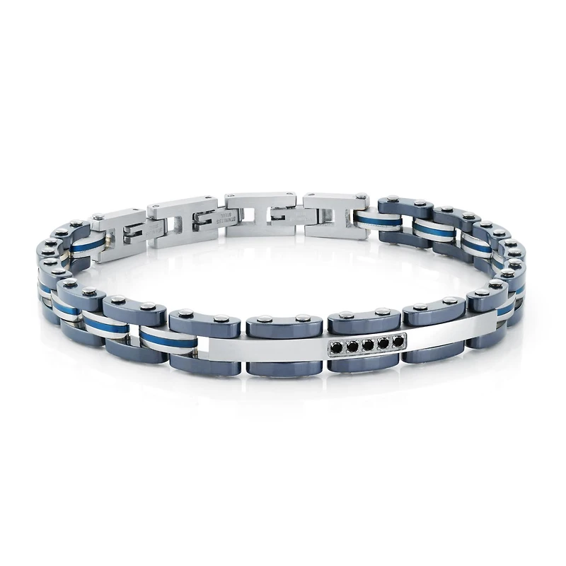 Add a pop of colour and sparkle with this stainless steel bracelet, featuring brilliant cubic zirconia stones in a striking blue hue. The sleek design is elevated by the dazzling stones, creating a sophisticated yet eye-catching accessory.