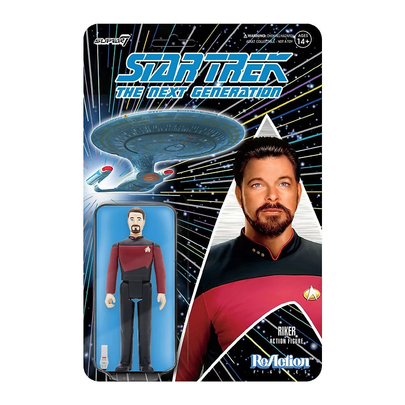 Commander William T. Riker may be second-in-command on the USS Enterprise, but he's number one in the hearts of many he encounters on his adventures! This 3.75" articulated Star Trek: The Next Generation ReAction Figure of Commander Riker depicts him in his red Commander's uniform with the beard that gives him that certain something which transcends interplanetary conventions. Make it your number one priority to add the Star Trek: The Next Generation ReAction Figure of Commander Riker to your collection!