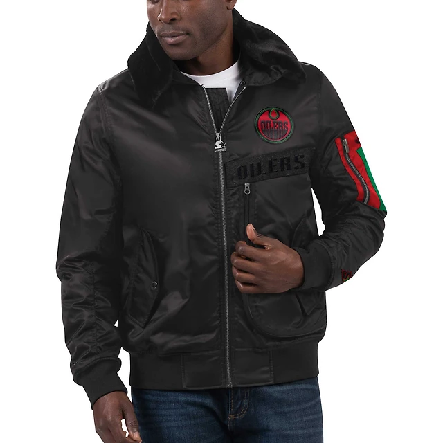 Starter x Ty Mopkins pour homme Black Edmonton Oilers Mois de l'histoire des Noirs en satin - Veste à glissière pleine longueur