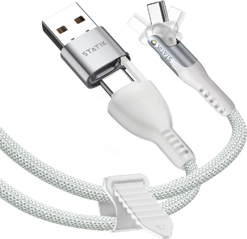 STATIK PowerPivot Pro Nylon Braided 3M (9.9ft) Cable USB-C to USB-C - White