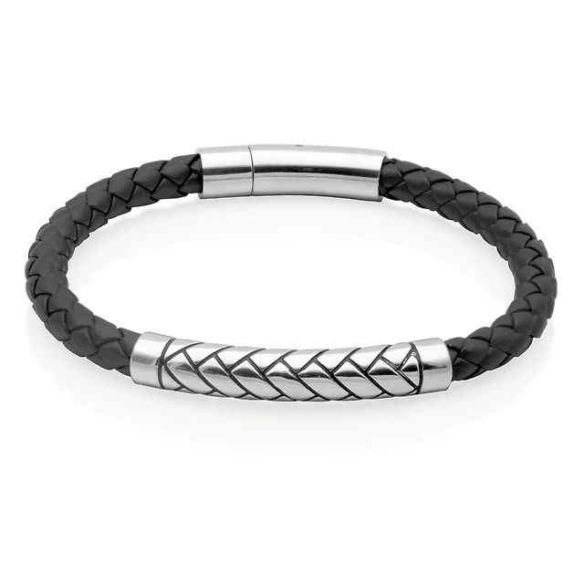 STEELX Stainless Steel Black Braided leather Bracelet 8.5"