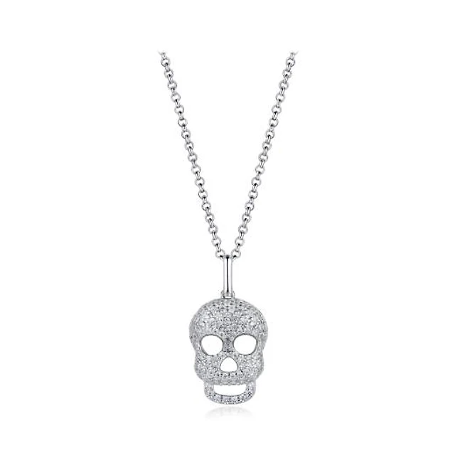 Sterling Silver Cubic Zirconia Skull 19" Pendant