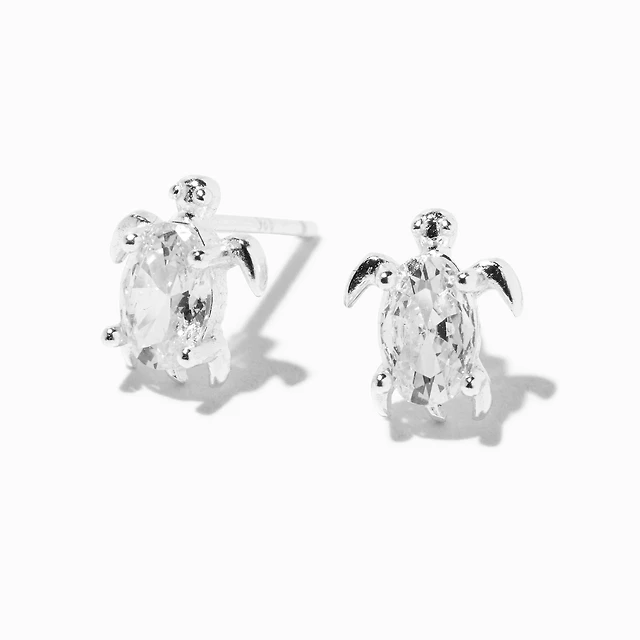 Sterling Silver Cubic Zirconia Turtle Stud Earrings