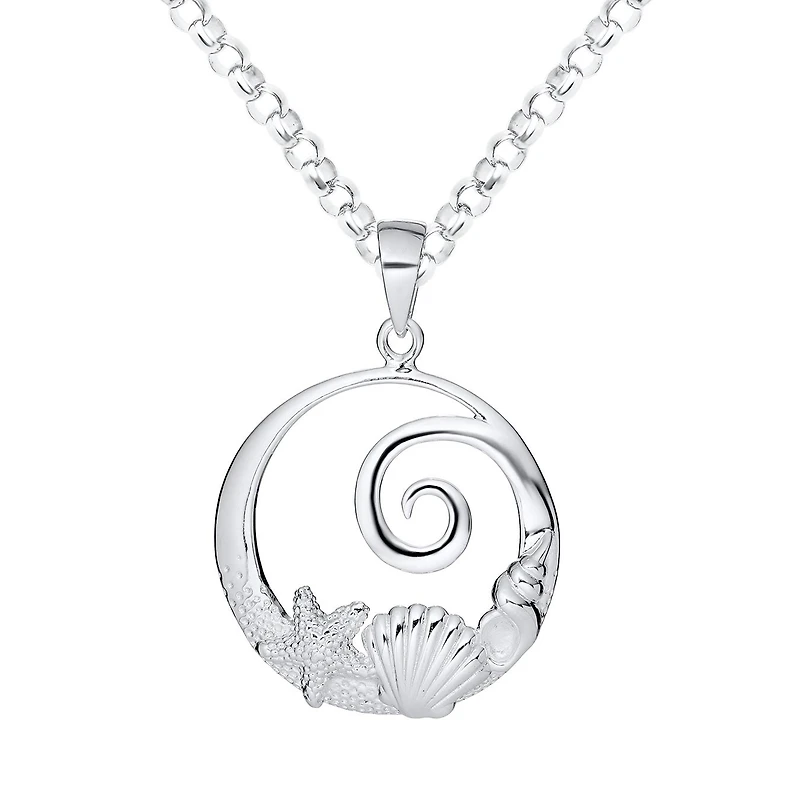 Sterling Silver Sea Life Drop Pendant 18