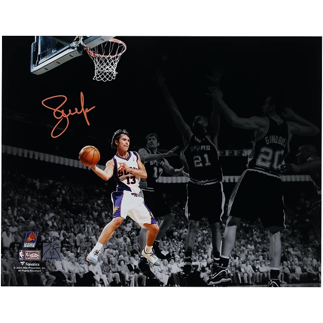 Steve Nash Phoenix Suns Autographed 11" x 14" Passing vs. San Antonio Spurs Spotlight Photograph - Signed in Orange Ink