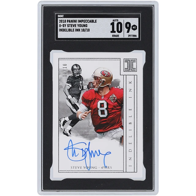 Steve Young San Francisco 49ers Autographed 2018 Panini Impeccable Indelible Ink #II-SY #10/10 SGC Authenticated 9/10 Card
