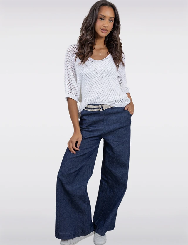 Stylish Crochet Knit Top 3/4 Dolman Sleeves With Scoop Neck by Froccella