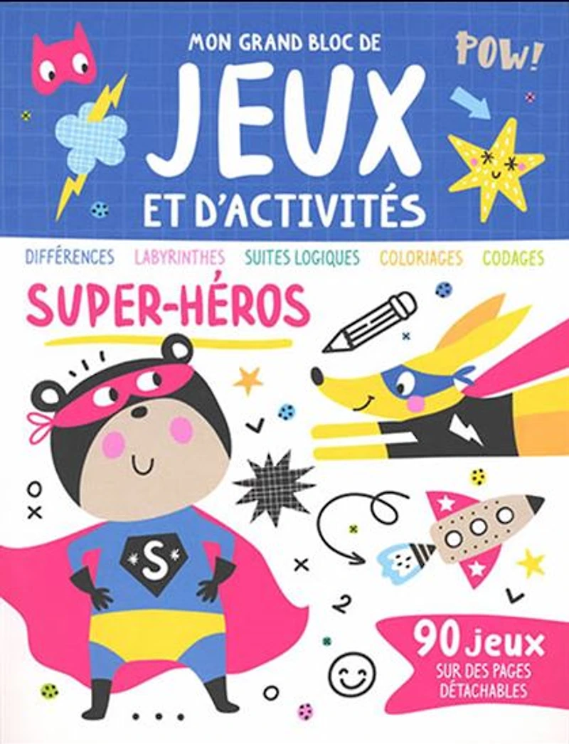 Loads of superhero fun! Search and find, spot the difference, puzzles, observation games, colouring, cutouts: in this book, children will find 90 games on detachable pages. Hours of fun in the awesome world of superheroes!Author: CollectivePublisher: 123 Soleil Number of pages: 96ISBN: 9782359907957
