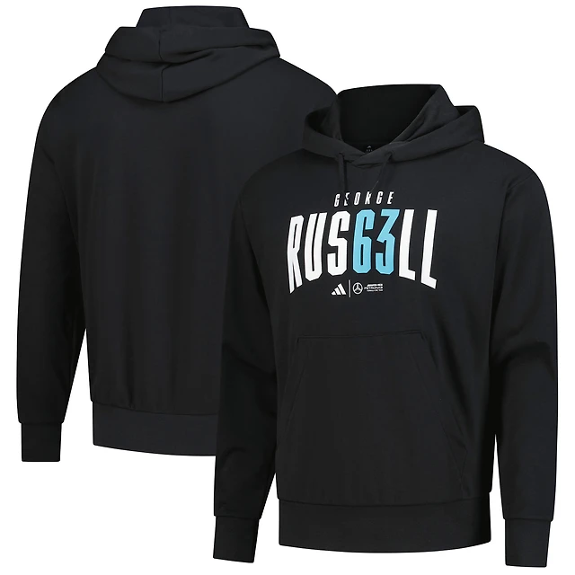 Sweat à capuche adidas George Russell noir pour homme, modèle pilote Mercedes-AMG Petronas F1 Team
