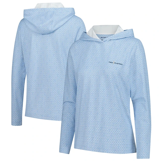 Sweat à capuche bleu clair Peter Millar THE PLAYERS Goldman Mar-Tee-Ni Break Pine pour femme