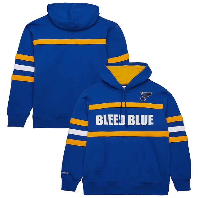 Sweat à capuche bleu Mitchell & Ness pour homme avec slogan de l'entraîneur-chef des St. Louis Blues