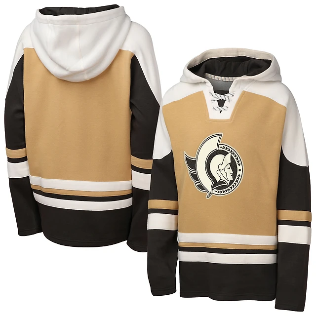 Sweat à capuche col en V Ageless Raglan des Sénateurs d'Ottawa de couleur beige pour jeunes Outerstuff