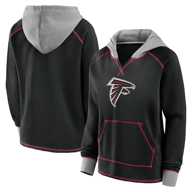 Sweat à capuche col en V et logo Athletic Black Atlanta Falcons Boom Fleece pour femme