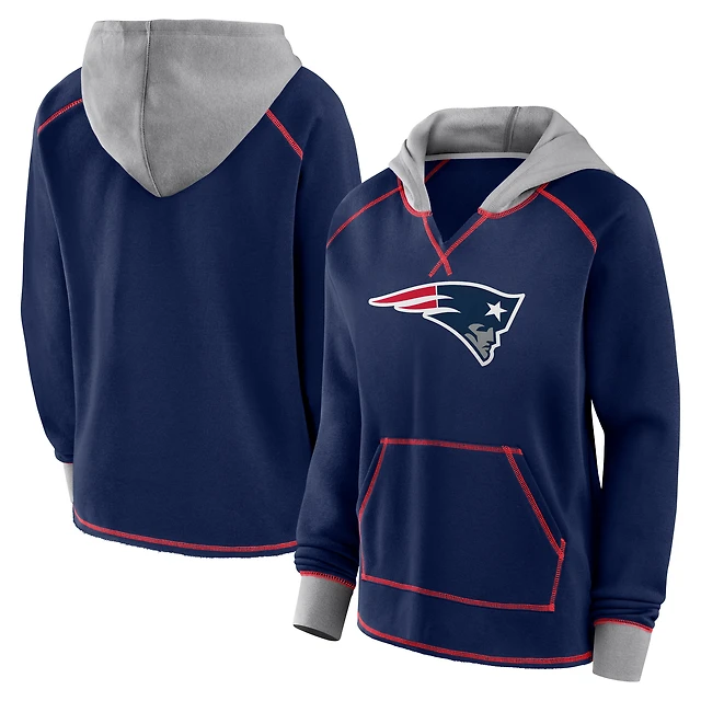Sweat à capuche col en V polaire avec logo Athletic Navy New England Patriots pour femme
