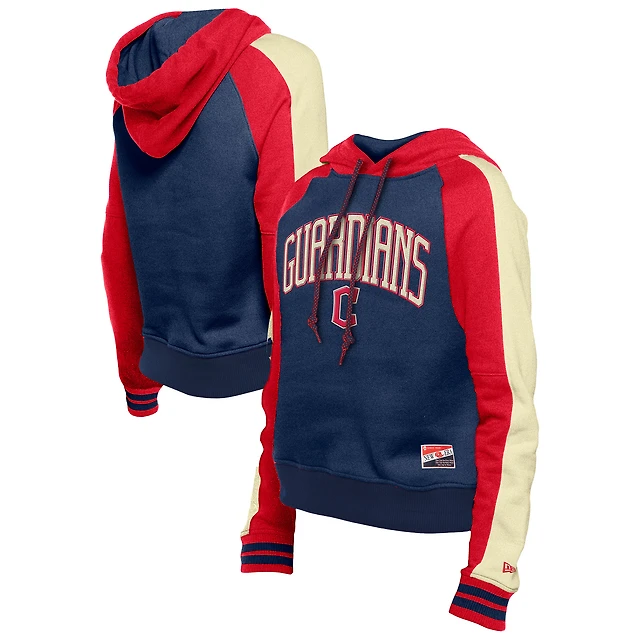 Sweat à capuche court manches raglan bleu marine Cleveland Guardians Cooperstown Collection pour femme New Era