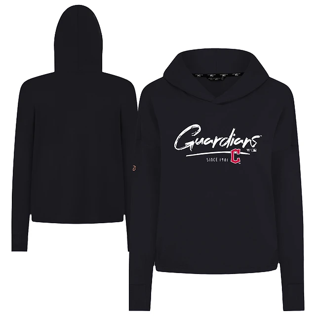 Sweat à capuche court noir Levelwear pour femme, Cleveland Guardians, Accolade Sweet Express, en mélange tri-mélange