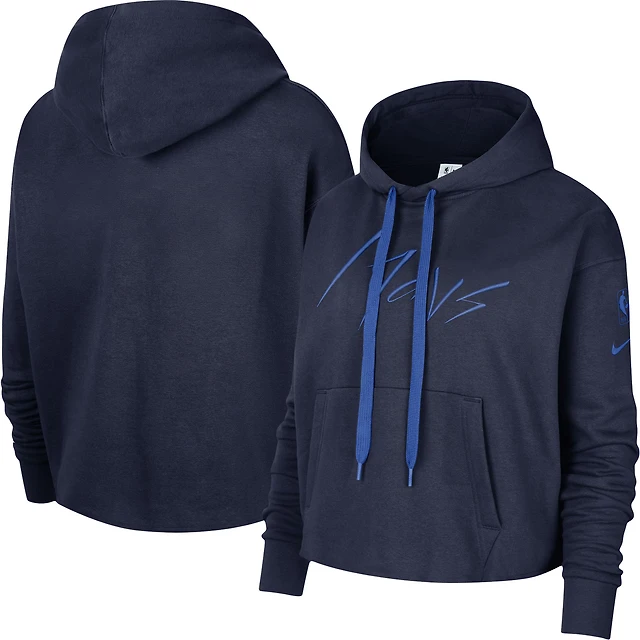 Sweat à capuche court pour femme Nike Dallas Mavericks Split Flip Courtside - Bleu marine