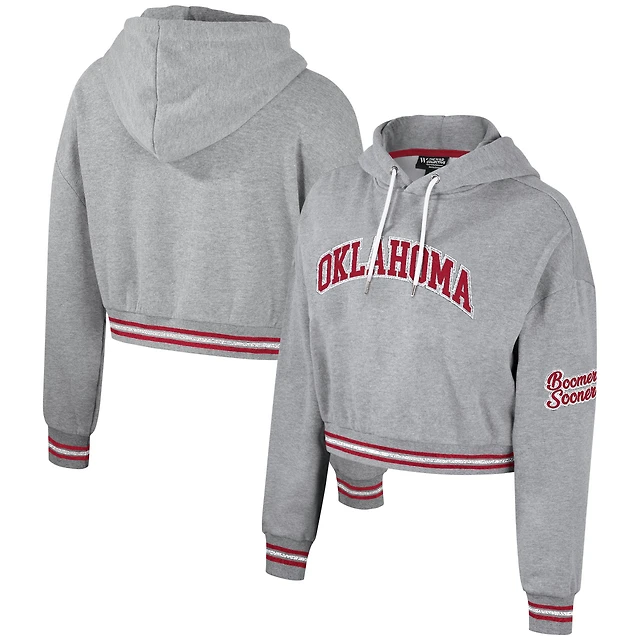 Sweat à capuche court scintillant pour femmes, The Wild Collective, gris chiné, Oklahoma Sooners