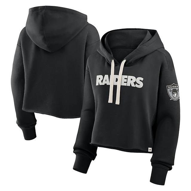 Sweat à capuche court surdimensionné noir Las Vegas Raiders pour femme Fanatics