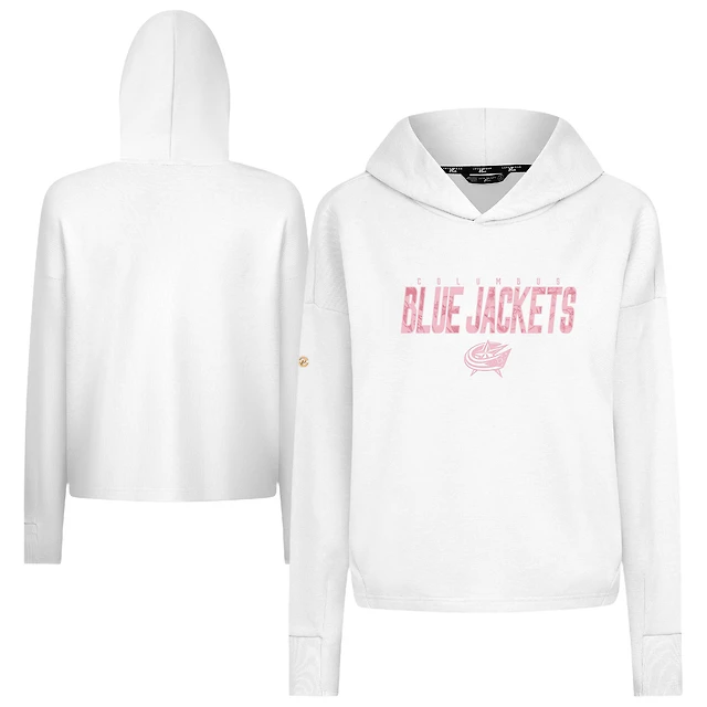 Sweat à capuche court trois mélanges floraux pour femme Levelwear White Columbus Blue Jackets Mother's Day