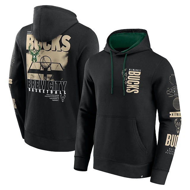 Sweat à capuche croisé Game Time pour homme Fanatics Black Milwaukee Bucks