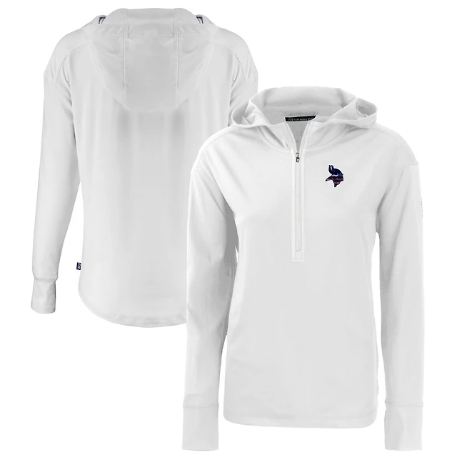 Sweat à capuche demi-zip écologique recyclé Daybreak pour femme, blanc, des Vikings du Minnesota, Cutter & Buck