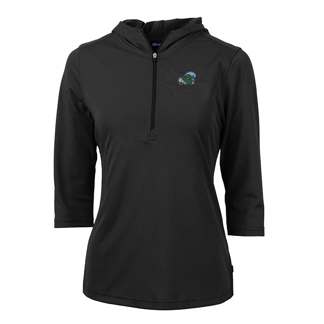 Sweat à capuche demi-zippé manches 3/4 pour femme Cutter & Buck Black Tulane Green Wave Virtue Eco Pique