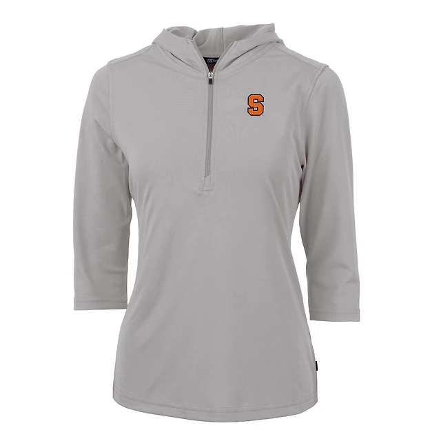 Sweat à capuche demi-zippé manches 3/4 pour femme Cutter & Buck Silver Syracuse Orange Virtue Eco Pique