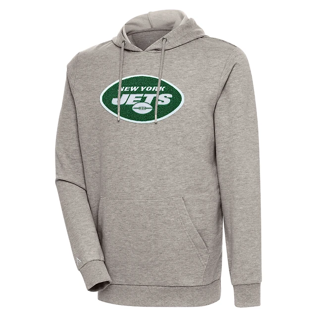 Sweat à capuche en chenille Action Antigua Oatmeal New York Jets pour homme