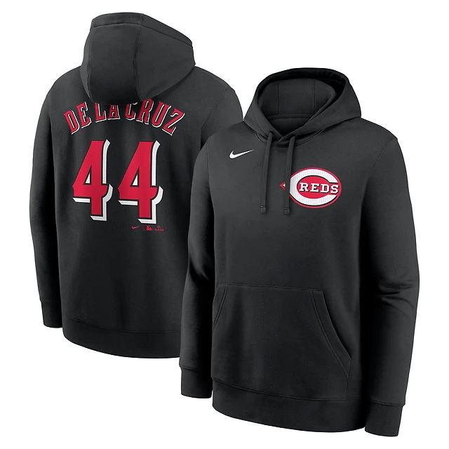 Sweat à capuche en molleton Nike Elly de La Cruz noir pour homme, avec nom et numéro du joueur des Reds Cincinnati