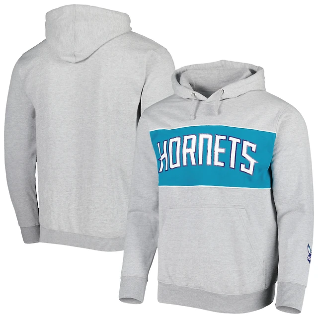 Sweat à capuche en tissu éponge Fanatics pour hommes, gris chiné, Charlotte Hornets, mot-symbole