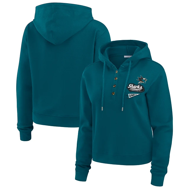 Sweat à capuche en tricot gaufré bleu sarcelle des Sharks de San Jose pour femme WEAR by Erin Andrews
