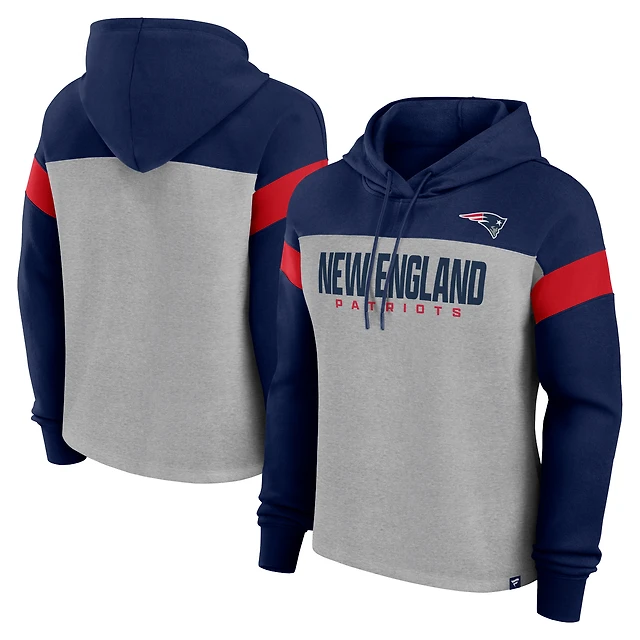 Sweat à capuche enfiler pour femme Fanatics Heather Grey/Navy New England Patriots Bold Play Call