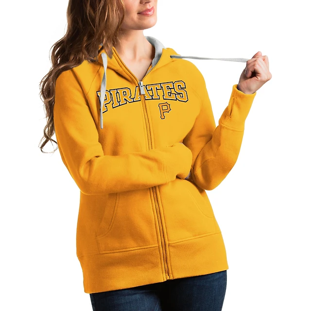 Sweat à capuche entièrement zippé avec logo de l'équipe des Pirates Pittsburgh Antigua Gold pour femme