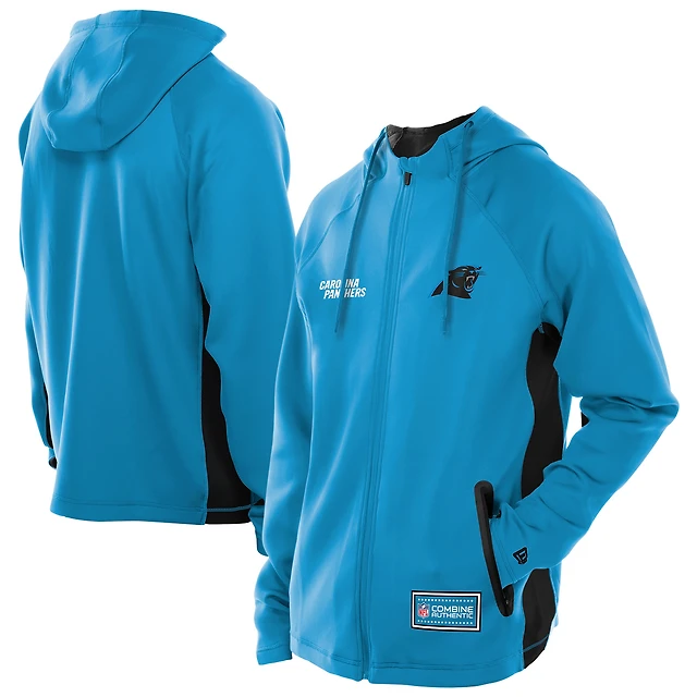 Sweat à capuche entièrement zippé bleu Carolina Panthers Combine Authentic Raglan Scuba pour homme de New Era