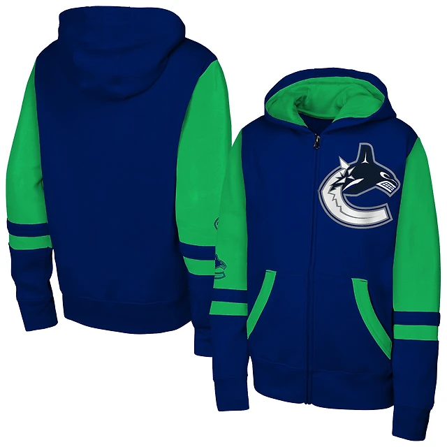 Sweat à capuche entièrement zippé bleu pour jeunes Vancouver Canucks Face Off