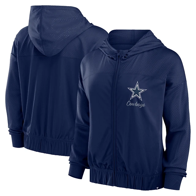 Sweat à capuche entièrement zippé Fanatics pour femmes, bleu marine, Dallas Cowboys Script Lock